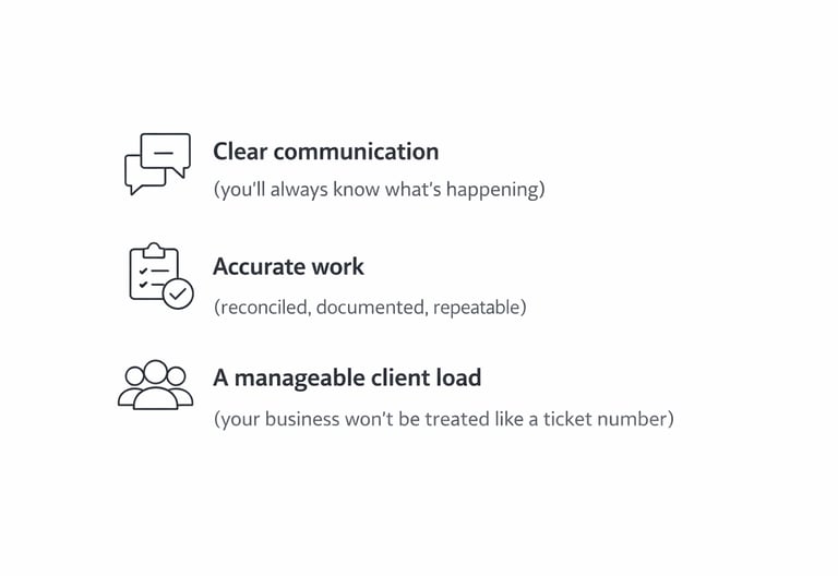 We've cleaned up books that were years behind. We've taken over from bookkeepers who ghosted. We've built systems for businesses that had nothing but a shoebox of receipts.